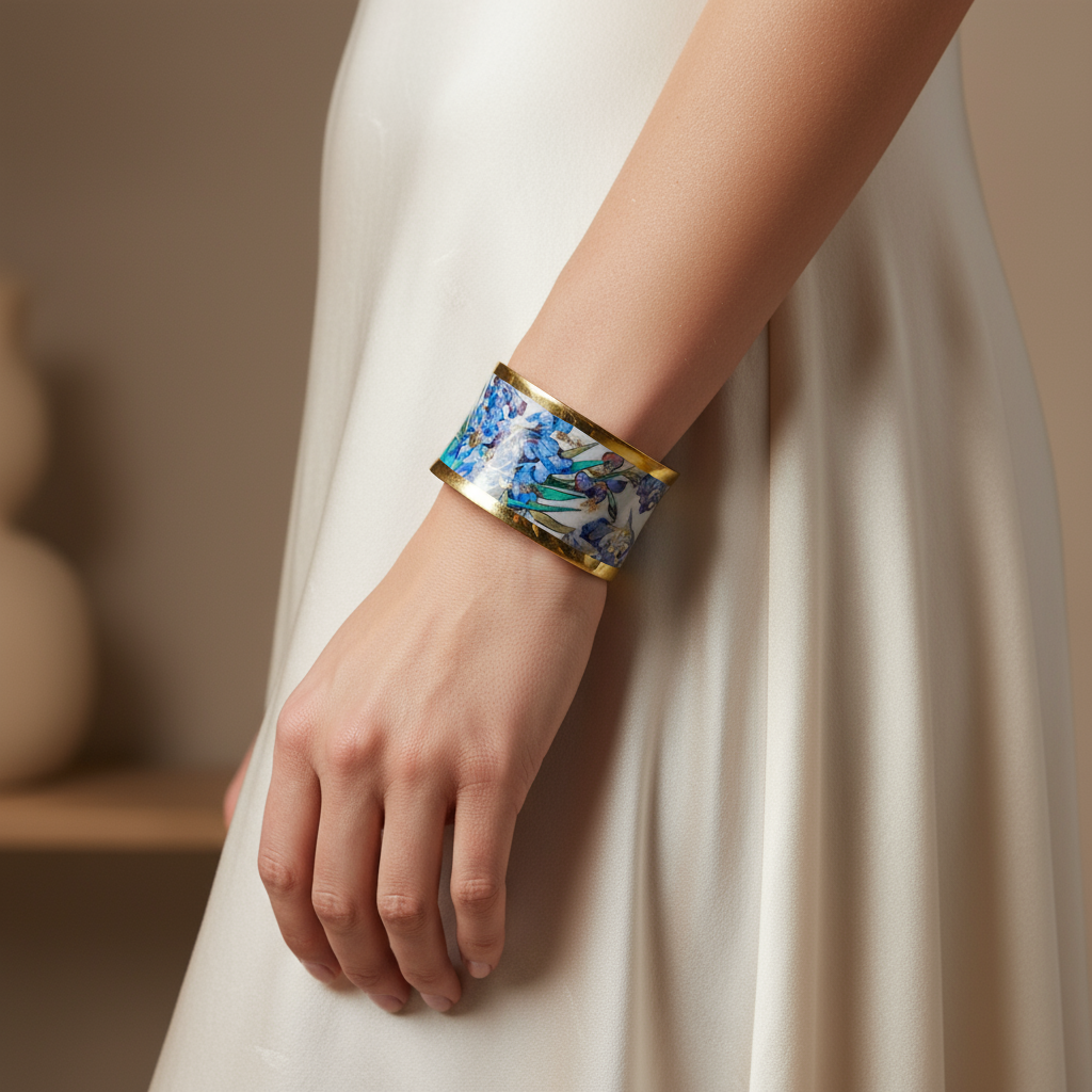 Our Puddles cuff is dappled with a multitude of paint droplets, creating a playful, dizzying display of bubblegum pink, flame orange and parrot green, just to name a few!